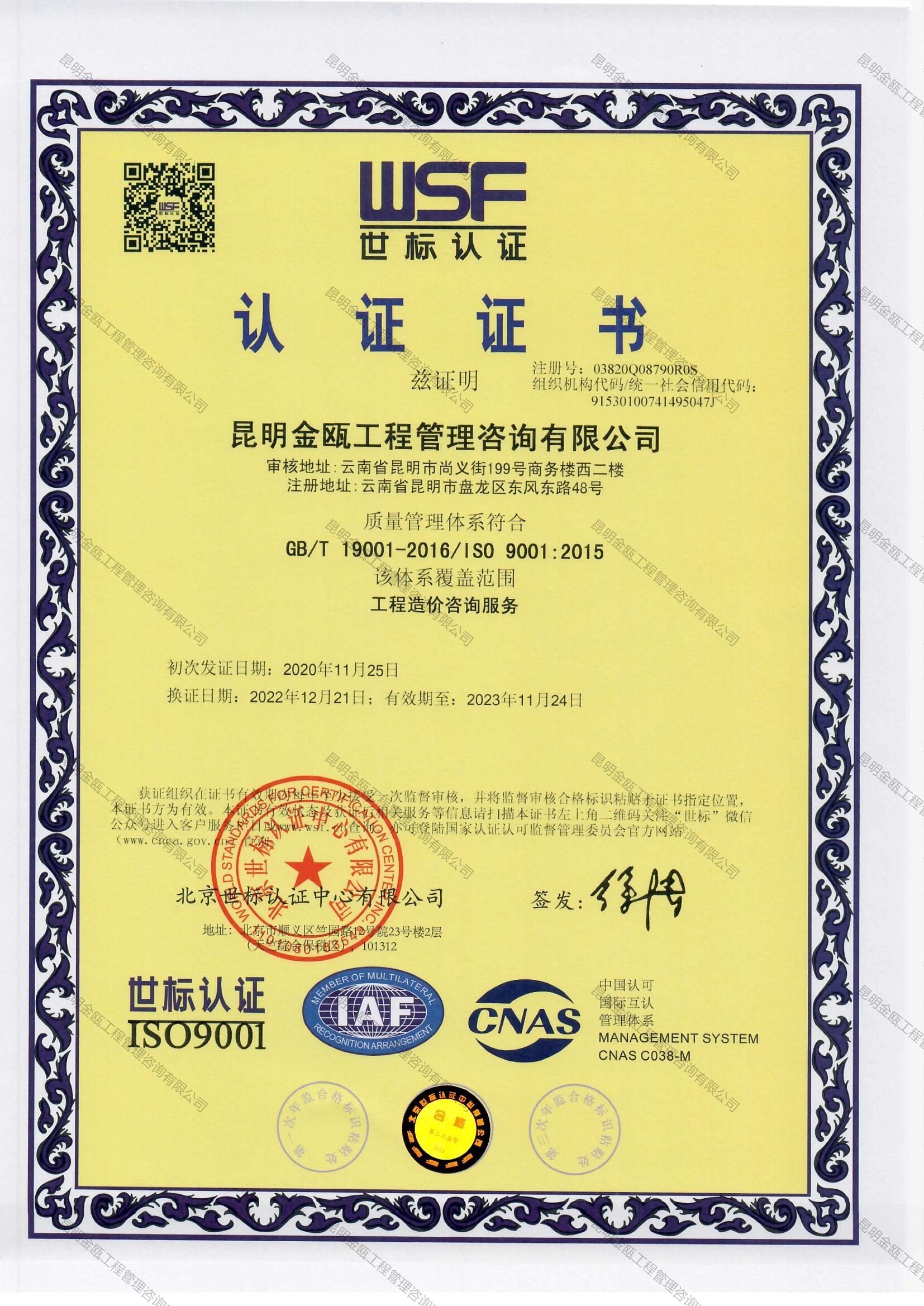 公司名稱: 昆明金甌工程管理咨詢有限公司