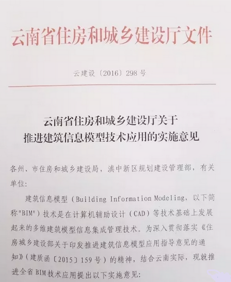 關于推進建筑信息模型技術應用的實施意見 云建設[2016]298號
