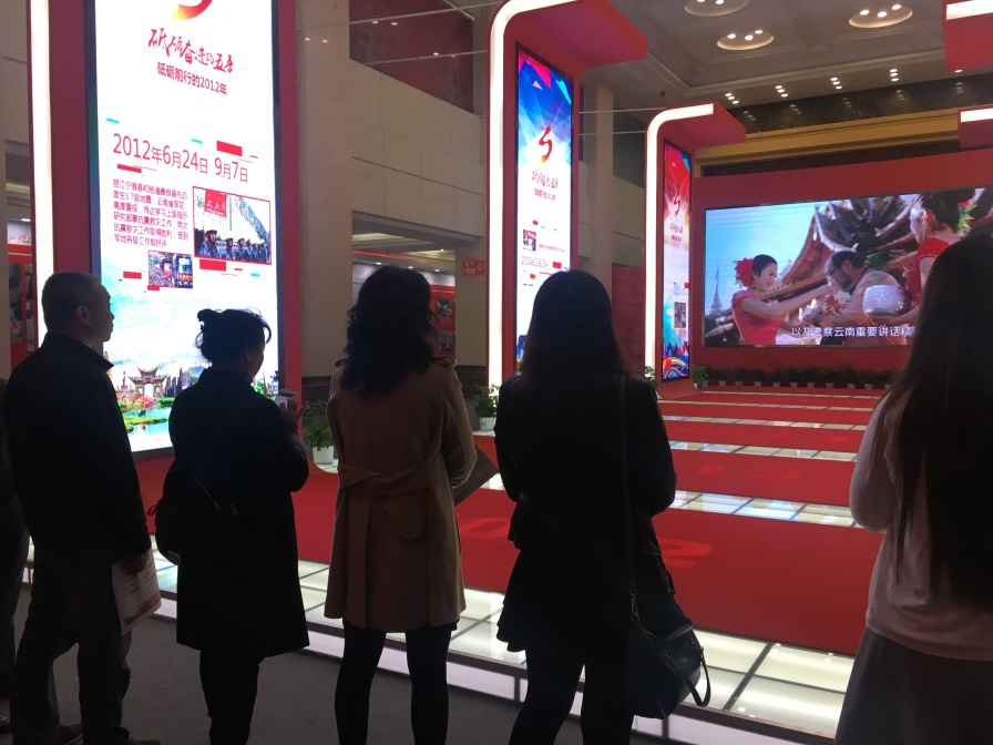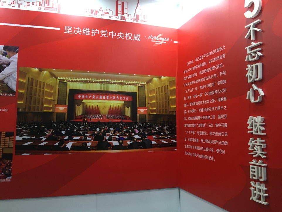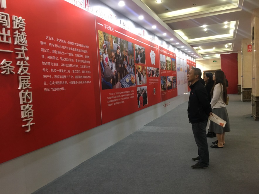展覽分為闖出一條跨越式發(fā)展的路子、民族團(tuán)結(jié)進(jìn)步示范區(qū)、生態(tài)文明建設(shè)排頭兵、面向東南亞輻射中心、不忘初心繼續(xù)前進(jìn)等五個(gè)部分。展示了黨的十八大以來(lái),省委、省政府團(tuán)結(jié)帶領(lǐng)全省各族人民深入學(xué)習(xí)貫徹習(xí)近平總書記系列講話精神和治國(guó)理政新理念、新思想、新戰(zhàn)略以及考察云南重要講話精神的實(shí)際行動(dòng)。展示了云南社會(huì)經(jīng)濟(jì)發(fā)展的輝煌成就、各族群眾生活的新變化,以及省委從嚴(yán)治黨取得的成效。統(tǒng)籌推進(jìn)“五位一體”總體布局和協(xié)調(diào)推進(jìn)“四個(gè)全面”戰(zhàn)略布局,堅(jiān)持以新理念引領(lǐng)經(jīng)濟(jì)發(fā)展新常態(tài),堅(jiān)持發(fā)展第一要?jiǎng)?wù)和全面從嚴(yán)治黨主體責(zé)任兩手抓、兩手都要硬,全省經(jīng)濟(jì)社會(huì)和黨的建設(shè)等各項(xiàng)工作都取得了新成效、發(fā)生了新變化,在決戰(zhàn)脫貧攻堅(jiān)、推動(dòng)跨越發(fā)展,全面建設(shè)小康社會(huì)的道路上邁出了堅(jiān)實(shí)的步伐。
