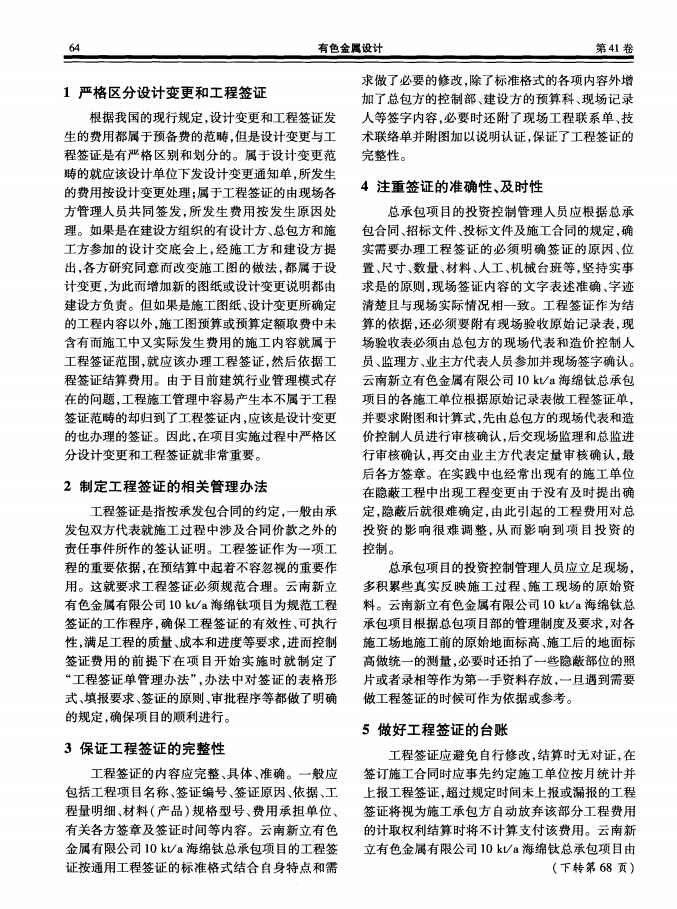熱烈慶祝我公司工程師發(fā)表的論文《談?wù)劰こ毯炞C的有效管理》入選《有色金屬設(shè)計(jì)》雜志2014年1期,交流在工藝、技術(shù)、控制、工程簽證等方面,工程造價(jià)的有效管理和造價(jià)控制運(yùn)行經(jīng)驗(yàn),推動(dòng)行業(yè)技術(shù)進(jìn)步和持續(xù)健康發(fā)展。